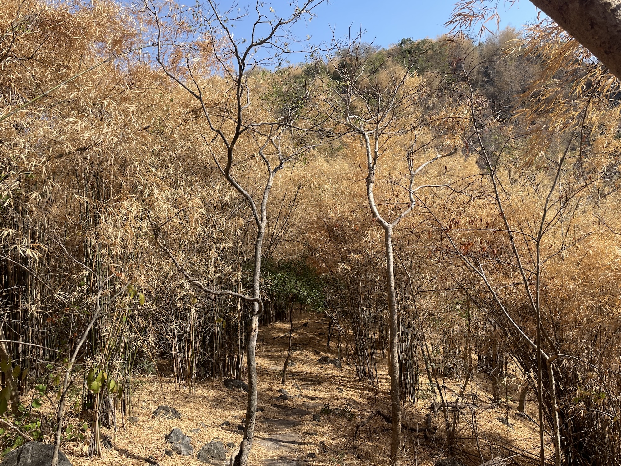 Litt nedover igjen gjennom en annen type skog.